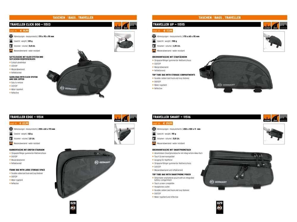 Rámová brašna 250 x 60 x 170 mm 132 g 1,0 Ltr. • Odolné a pogumované upínaní • Vodotěsná • Reflexní prvky