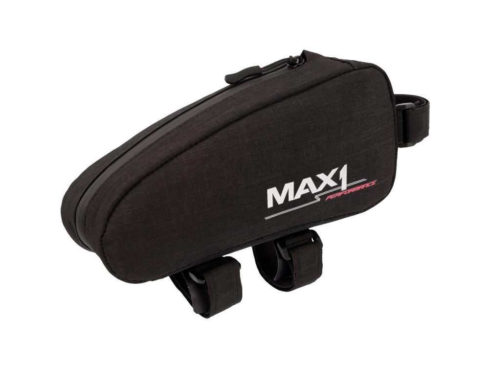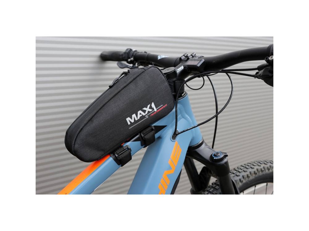 Rámová brašna MAX1 pro montáž na horní rámovou trubku, objem 1,6 l, reflexní loga na stranách, krytý horní zip, montáž pomocí velcro pásků