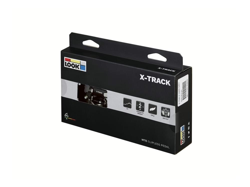 X-Track je základní model MTB pedálu LOOK, který je tvořen robustním hliníkovým tělem a dvojitě utěsněnou osou z materiálu Chromol, Ta zajišťuje naprostou plynulost v průběhu šlapání. Předpětí lze snadno a rychle nastavit v rozsahu 6 až 14 podle požadavků cyklisty. Pedály kombinují mechanismus SPD standardu s širokou kontaktní plochou pro efektivitu a bezpečnost.