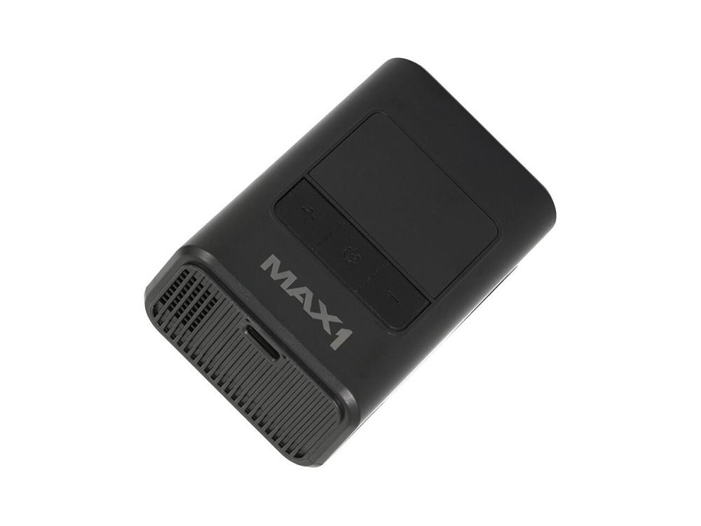 Automatický kapesní akumulátorový kompresor MAX1 pro huštění jízdních kol a motocyklů.