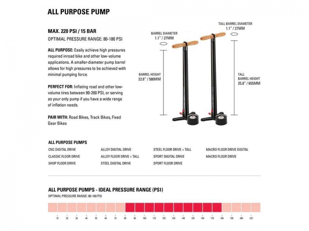 Sport Floor Drive 3.5 spája oceľový valec a piest s našou odolnou základňou a rukoväťou Composite Matrix a nadrozmerným, veľmi presným analógovým meradlom.